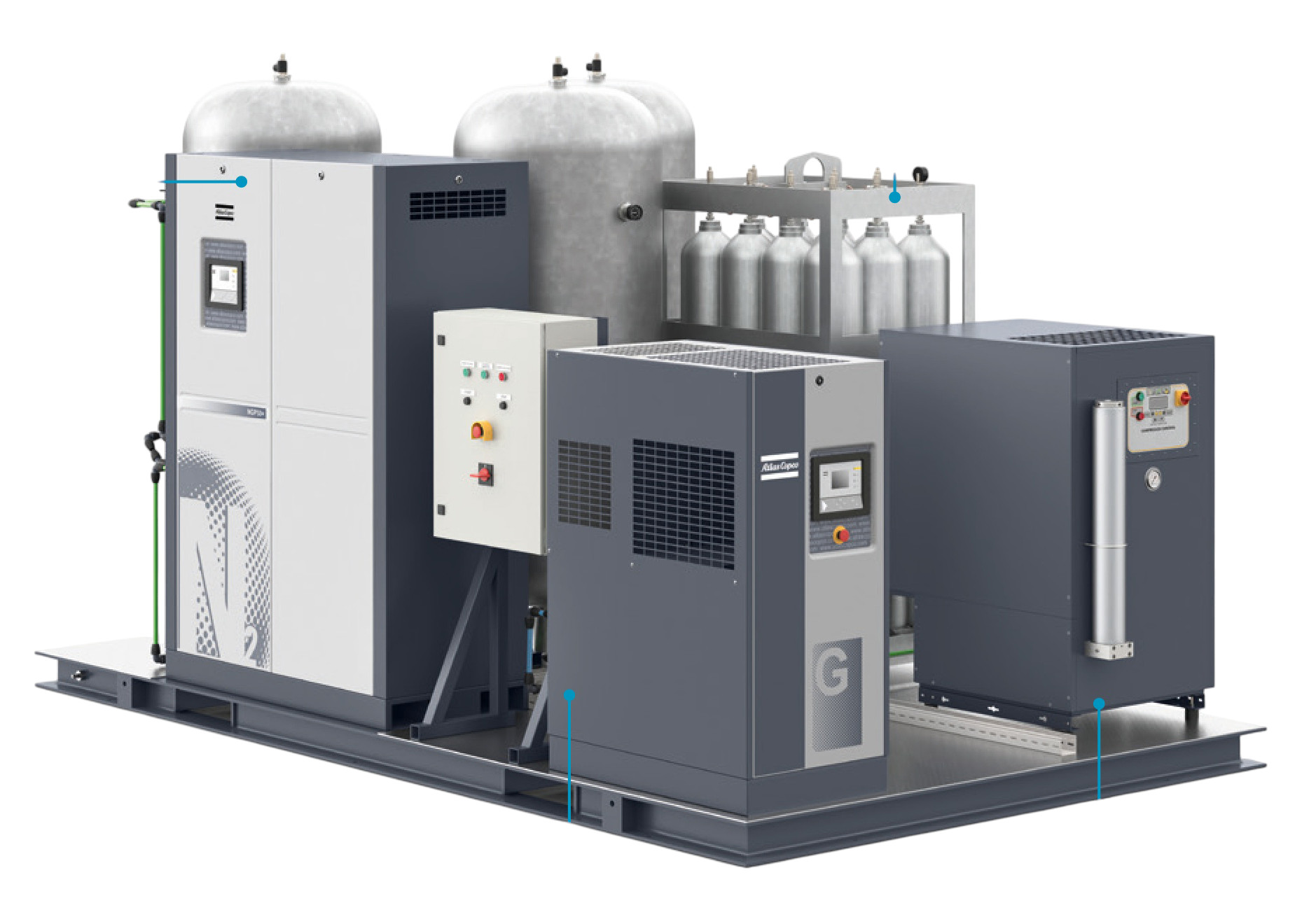 • Solution compacte et prête à l'emploi pour la production et le stockage d'azote sur site