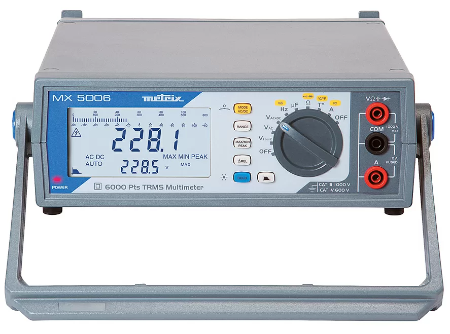 • Le multimètre de table TRMS MX5006 dans un boîtier qui a fait ses preuves : léger et compact