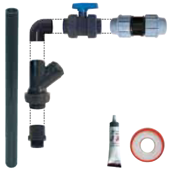 • Ce kit inclut des embouts, tuyaux, clapet et vanne pour une configuration complète