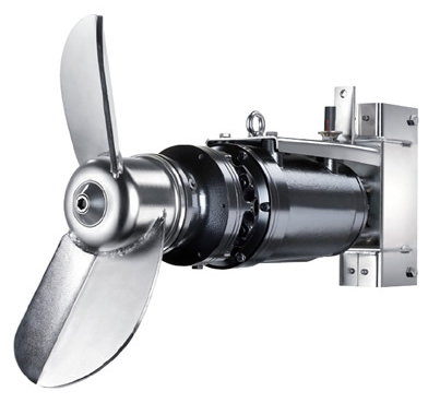 • Mélangeur submersible horizontal conçu pour des applications en eau propre et pour les bassins de traitement d’eaux