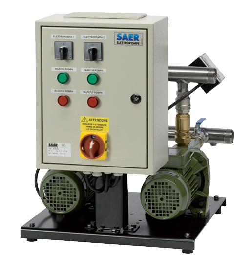 Description du produit "Groupe de surpression avec 2 pompes auto-amorçantes Saer TB2-M"