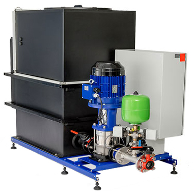• Équipé d'un groupe de pompage simple et d'un réservoir séparateur amont, il pompe assure une pression d'eau constante pour les dispositifs de lutte contre l'incendie
