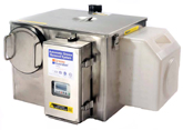 • Une résistance programmée depuis l'automate est activée pour liquéfier les graisses, qui sont ensuite écrémées par le rouleau d'écrémage et déposées dans un bac collecteur portable pour qu'elles soient recyclées en biocarburant. Il peut être également raccordé à un bac de petite dimension