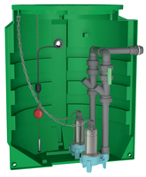 • 1 passage de paroi en PVC Ø 50 x 2“ pour le passage des câbles pompes et flotteurs