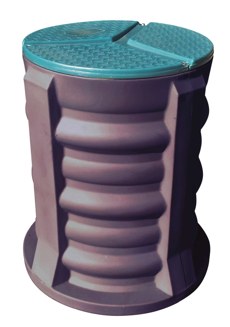 • Couvercle à poser en polyéthylène haute densité vert gazon, fixé par trois vis en acier inoxydable