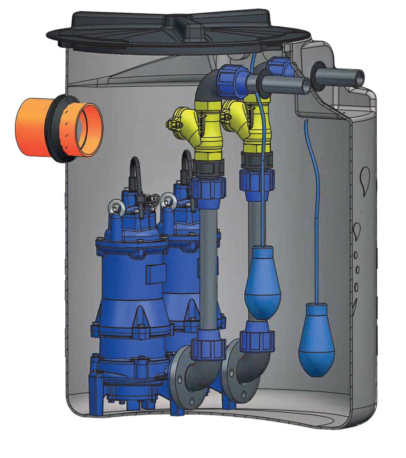 • Sa conception compacte facilite l'installation dans des locaux techniques, caves ou zones enterrées nécessitant un relevage automatique des effluents