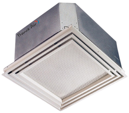 • Grille de soufflage et de reprise en acier RAL 9003 avec diffusion 4 directions et pivot d'accès'au filtre G2