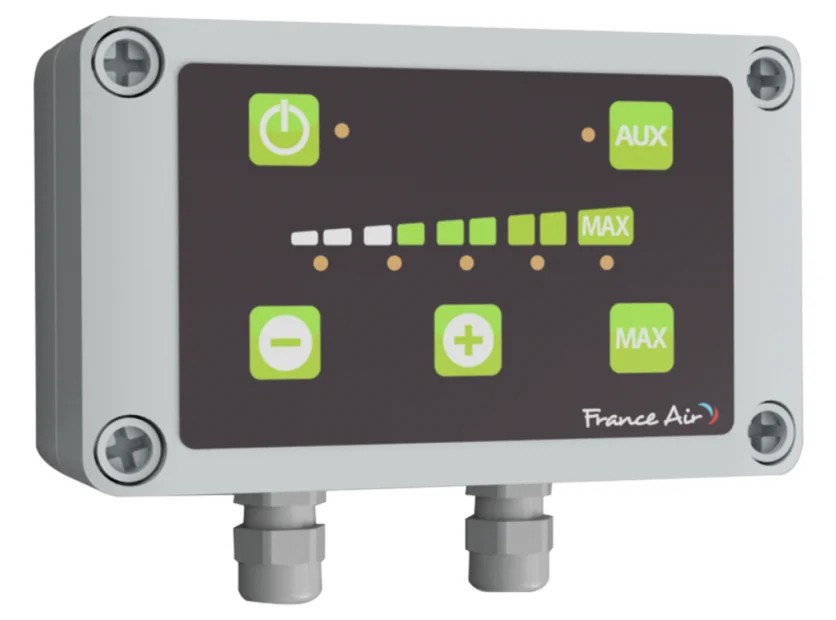 • La télécommande France Air EVOLYS TOUCH est conçue pour piloter et faire varier la vitesse de ventilateurs équipés de moteurs à commutation électronique