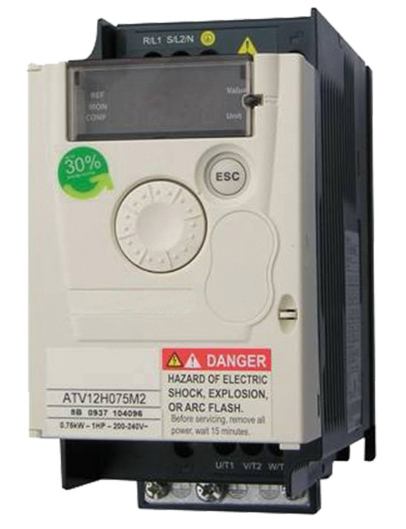 • Sa conception autorise le fonctionnement en monophasé 230 V avec sortie triphasée 230 V ou en triphasé 400 V avec sortie triphasée 400 V selon les versions, pour s'adapter à de nombreux moteurs