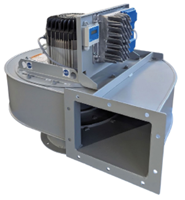 • Ce modèle à entraînement direct intègre un moteur ECM à haut rendement avec contrôleur déporté IP55 pour un contrôle précis de la pression et du débit d'air